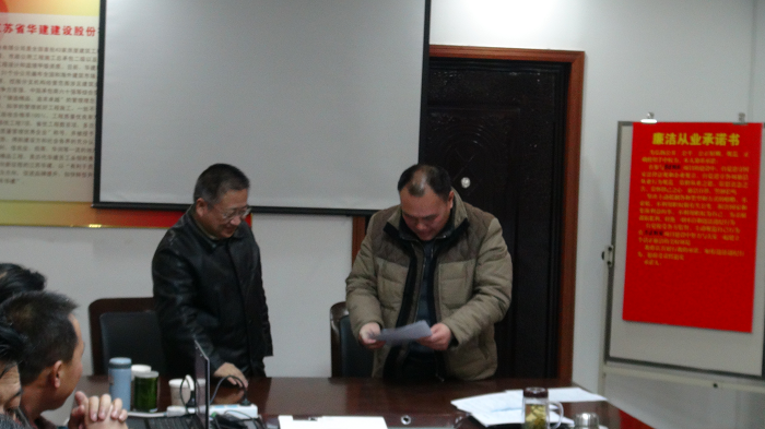 鹽城華建置業(yè)公司總經(jīng)理繆文明、支部書(shū)記周群利代表全體員工表態(tài):公司經(jīng)營(yíng)層要帶頭執(zhí)行公司各項(xiàng)規(guī)定,遵紀(jì)守法,廉潔自律,把廉潔從業(yè)承諾書(shū)落到實(shí)處。